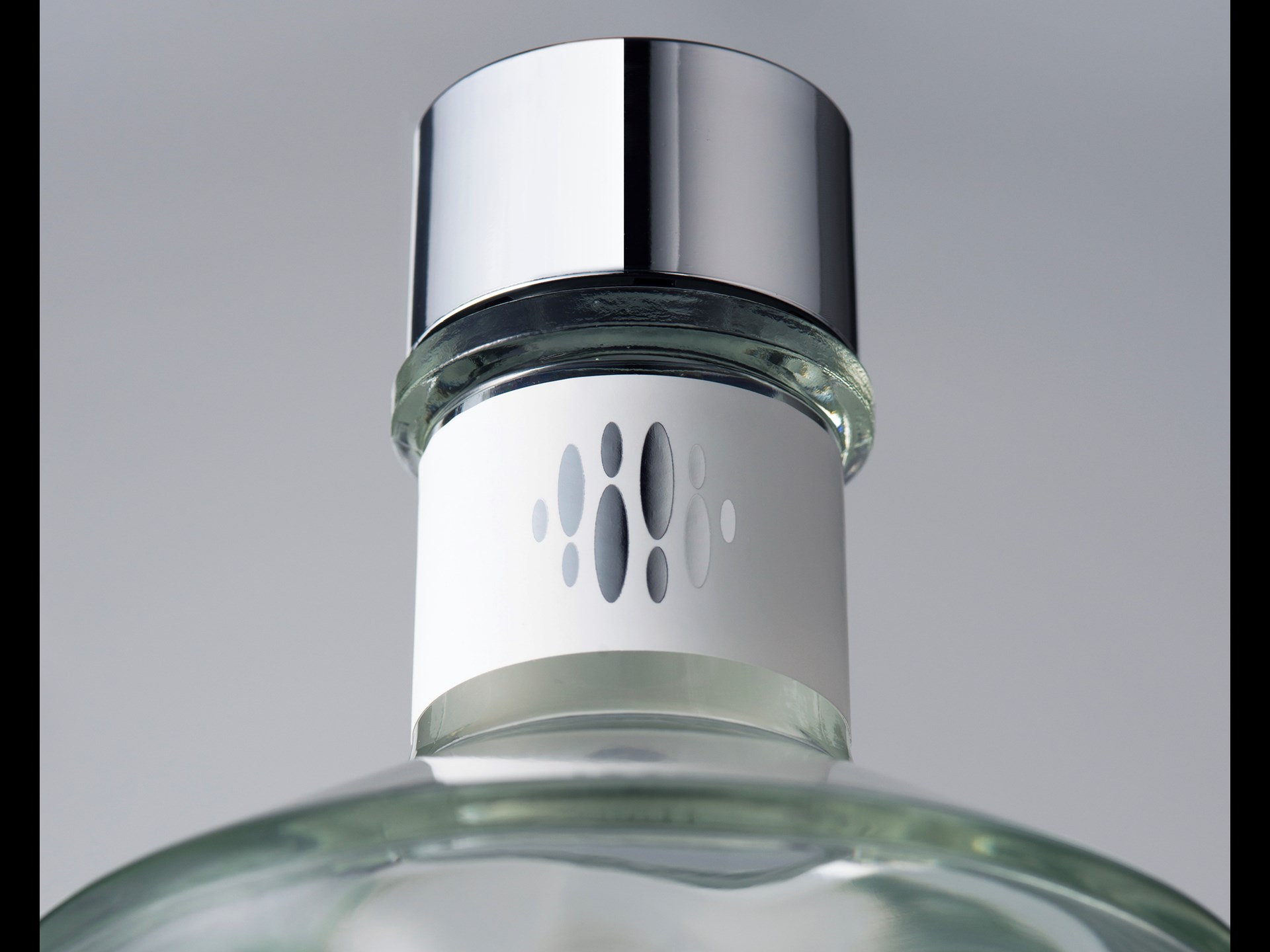 The organic silhouette of the bottle form is inviting to the touch and protean in appearance, looking different depending on the viewing angle, lighting conditions and quantity of liquid remaining.