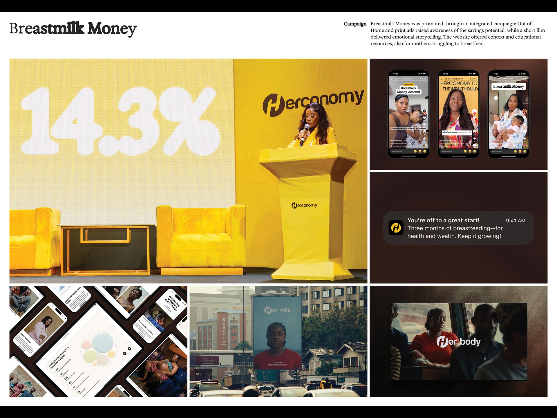 In the first three months Breastfeeding rates increased by 9 percent in key regions, Herconomy app sign ups grew by five times, Over 35 million US dollars in potential savings were tracked by users, The campaign generated more than 150 million dollars in earned media.